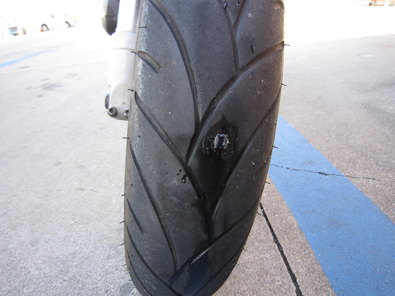 なんだろう?と思うと前輪がパンクしたと。