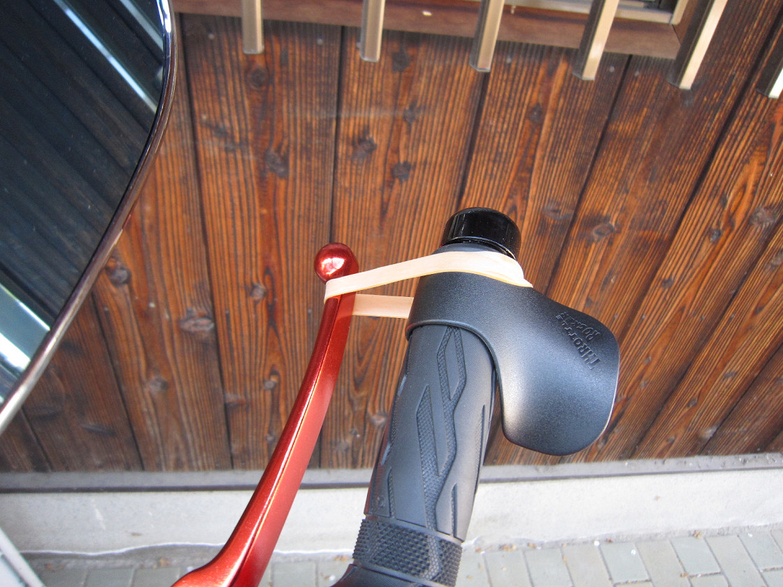 車体が動かないようフロントブレーキを固定。
