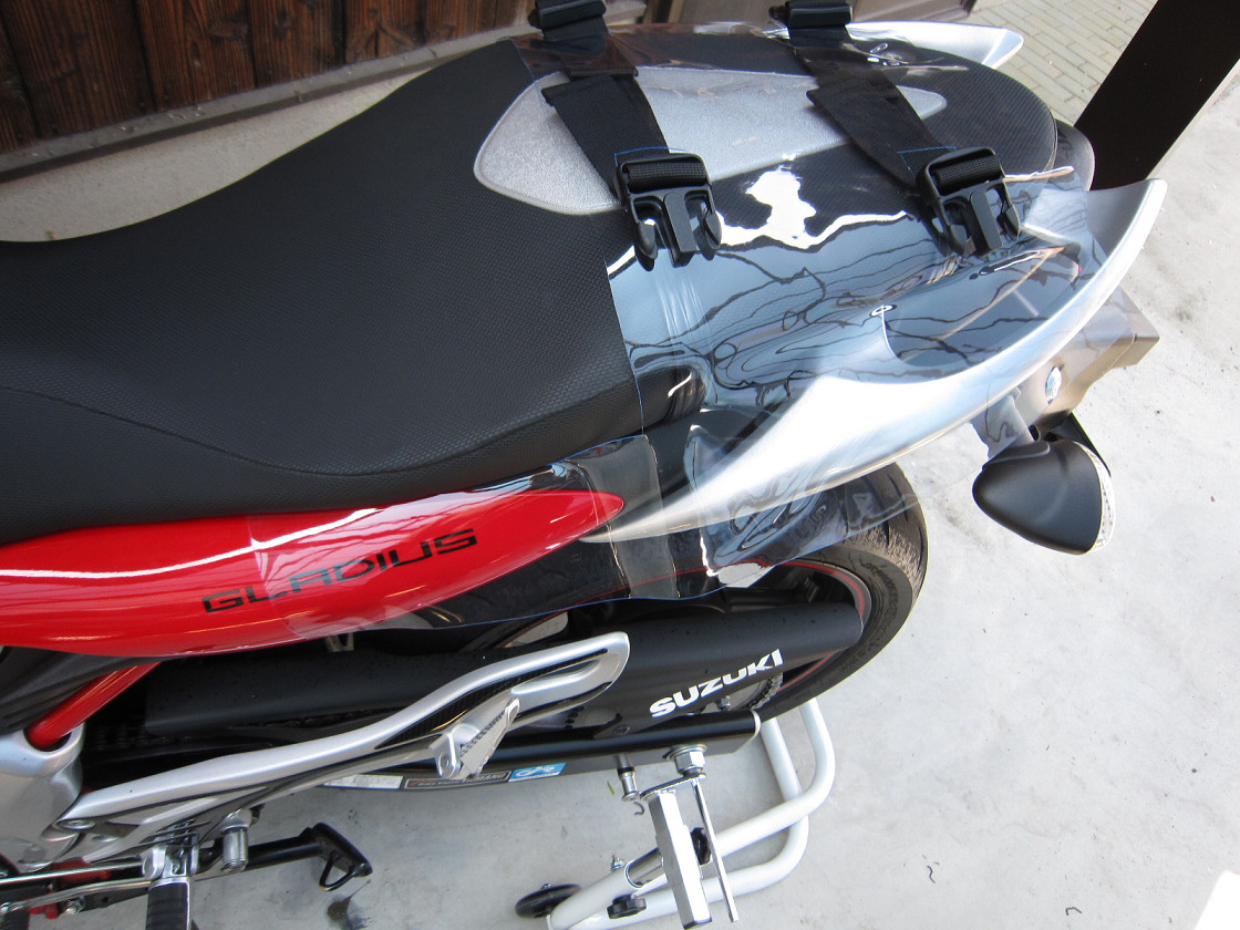 それはさておき、車体を立てられるって事でサイドバッグからの傷防止も行いました。