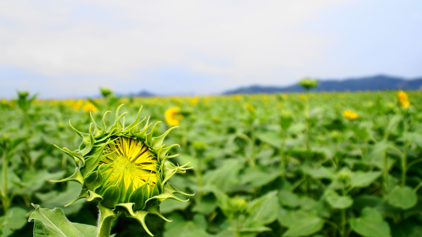 さすがにまだまだ咲いてなかったけれど、普段とは違う咲きかけのひまわりなんかもたまには良いかなーなんて。