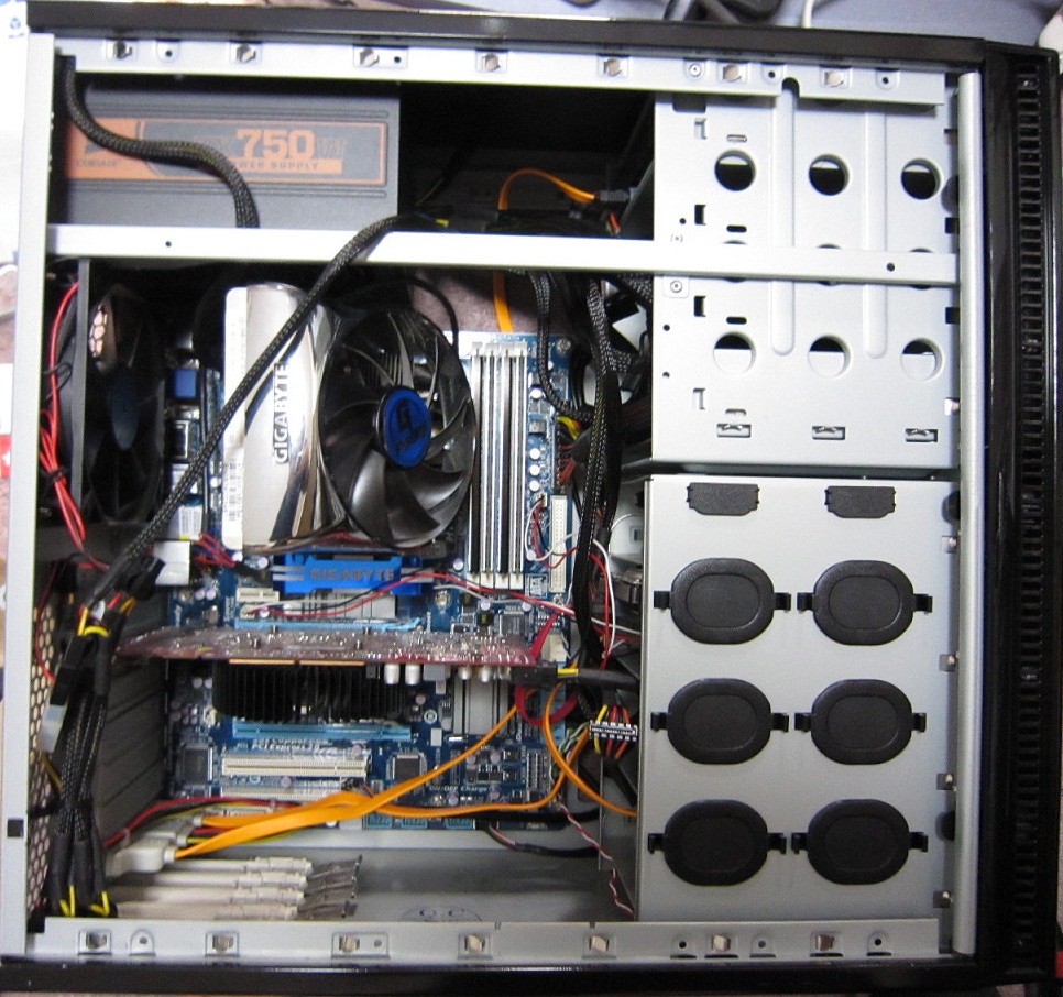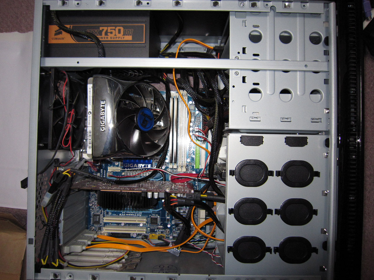 こんな感じ。上二つ外すだけでかなりすっきり。てか CPU クーラーがでかすぎっすね。