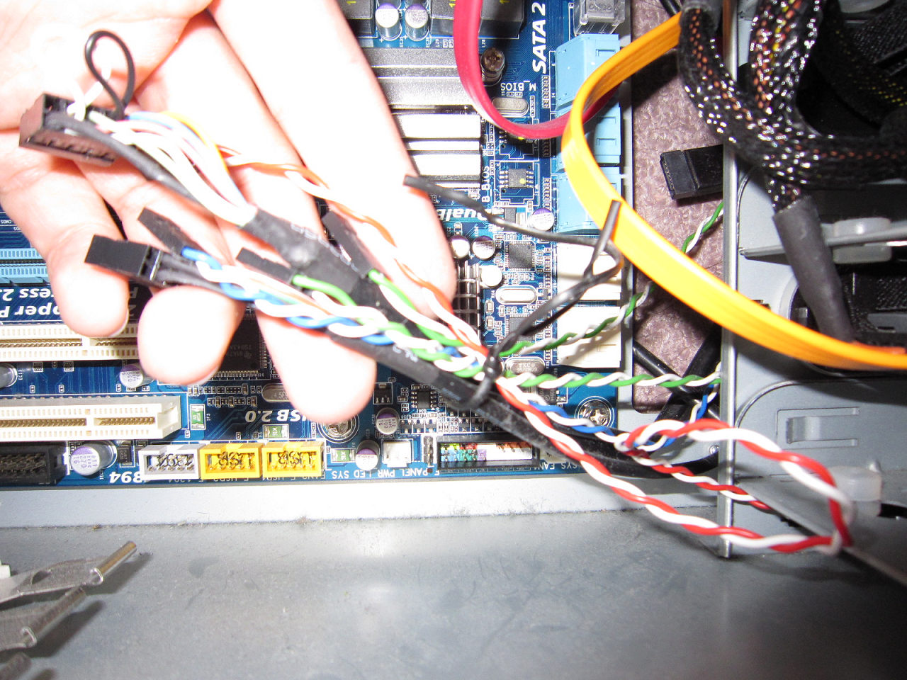 配線外して行くんだけれど、箱と M/B を繋ぐ細い線とかは見失うとめんどいのでまとめときまそう。